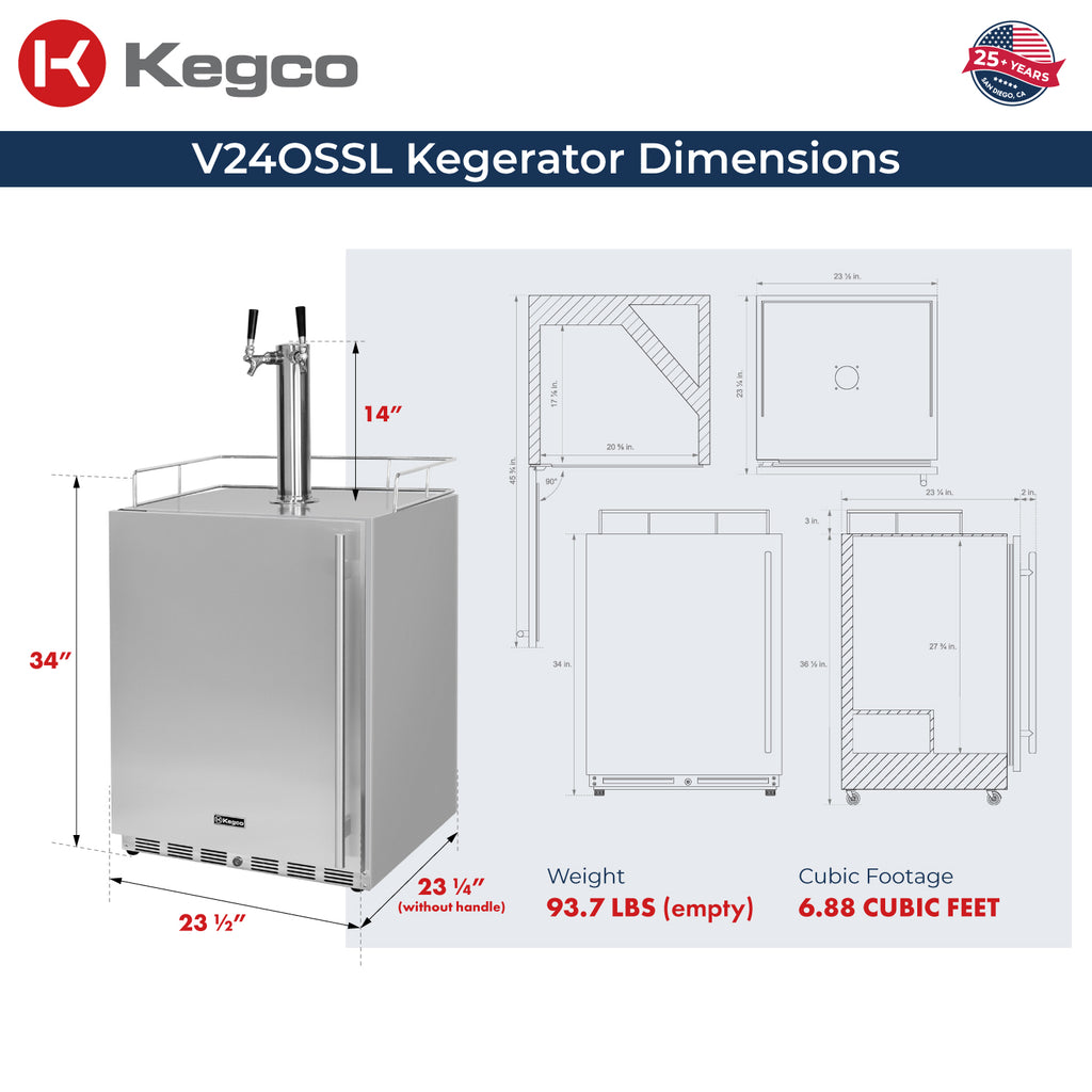 V24 Cold Brew Coffee Kegerator - Outdoor 24" Wide Dual Tap All Stainless Steel Built-In Left Hinge Kegerator