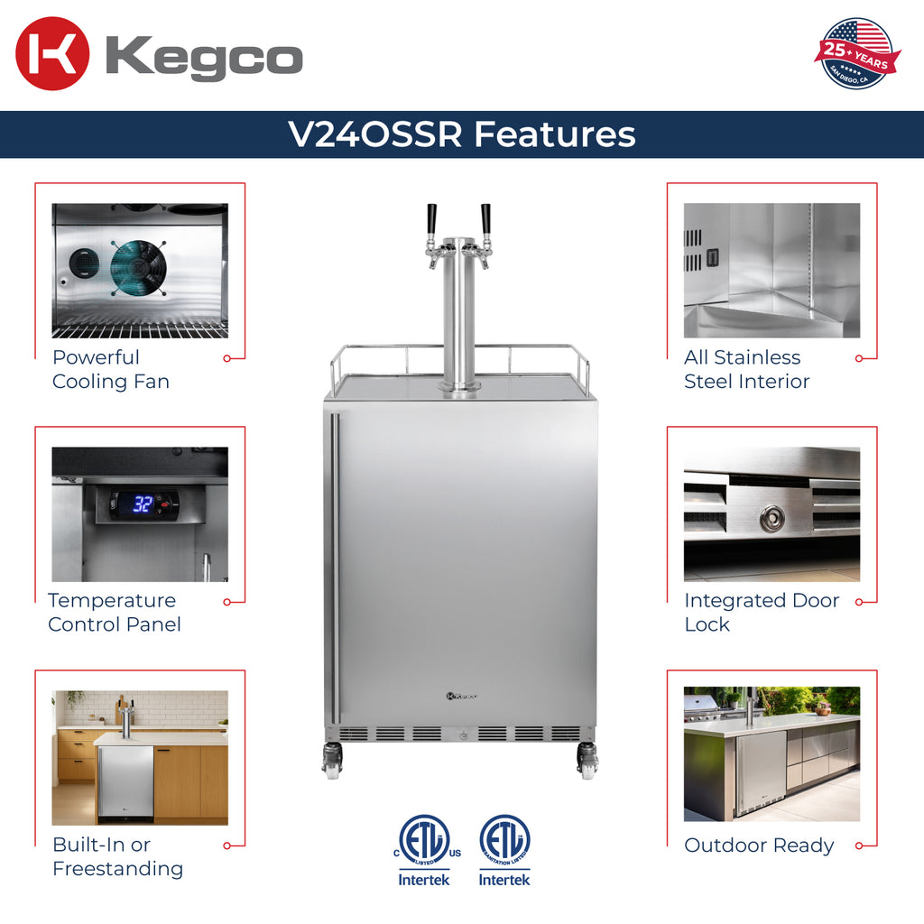 The front-venting design allows you to build this kegerator into cabinetry for a seamless look that is easy to maintain and provides more floor space. An integrated tap in your countertop gives you immediate access to fresh, cold beverages.
