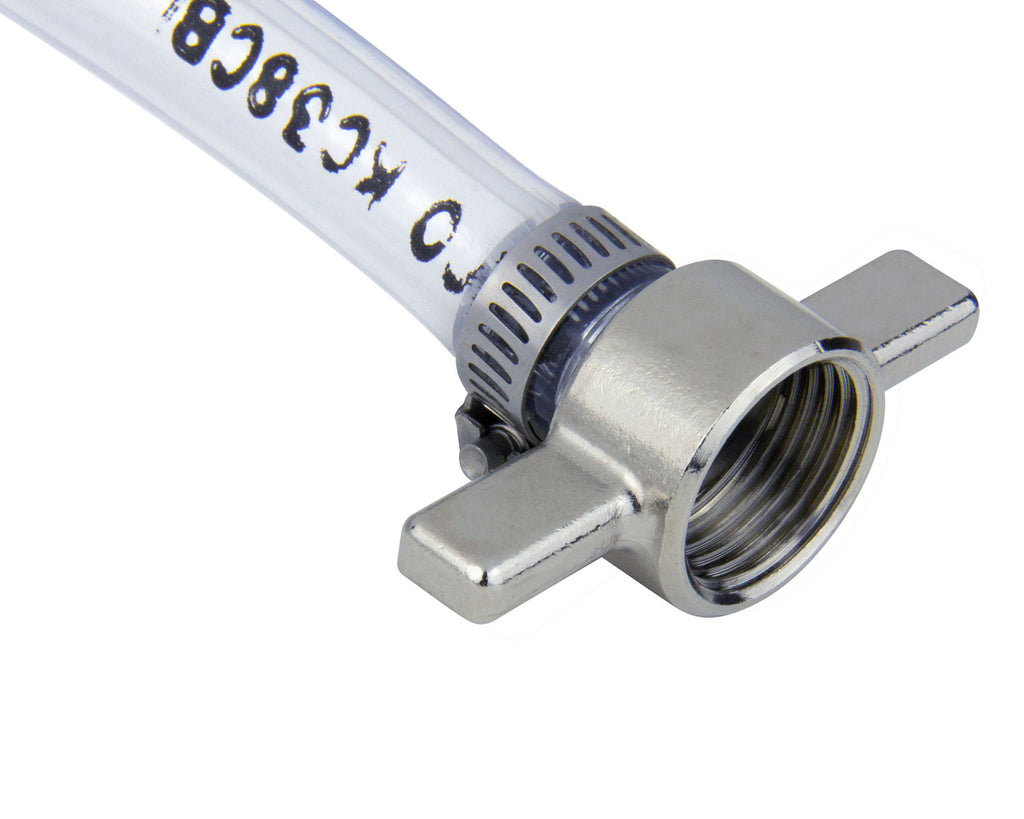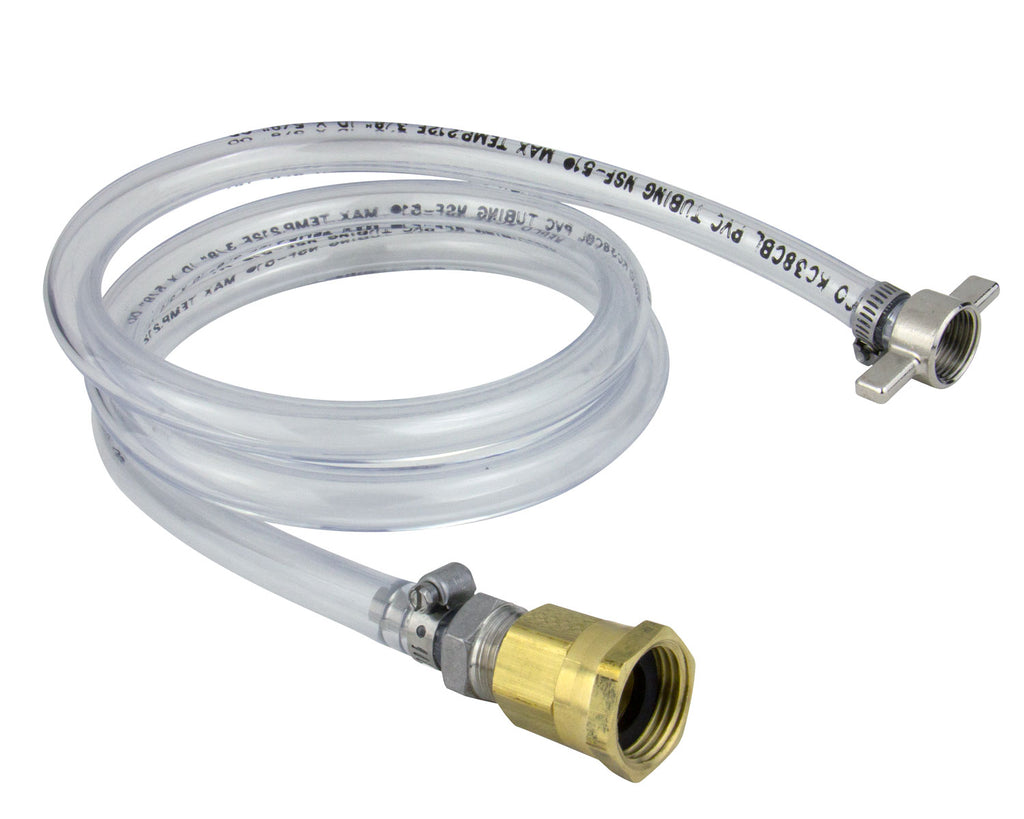 An easy way to keep your beer tasting great is to regularly rinse your jockey box coil using this Kegco Jockey Box Flusher Line. We've designed this kit with a 5 foot length of 3/8" beer line and all of the fittings you'll need, including a female garden hose fitting on one end and a stainless steel tailpiece, coupling wing nut, and neoprene coupling washer on the other end. Once assembled, simply attach one end to a garden hose faucet and the other end to the jockey box coil inlet and run clean water through the coil and out of the jockey box faucet.