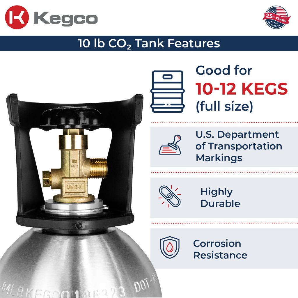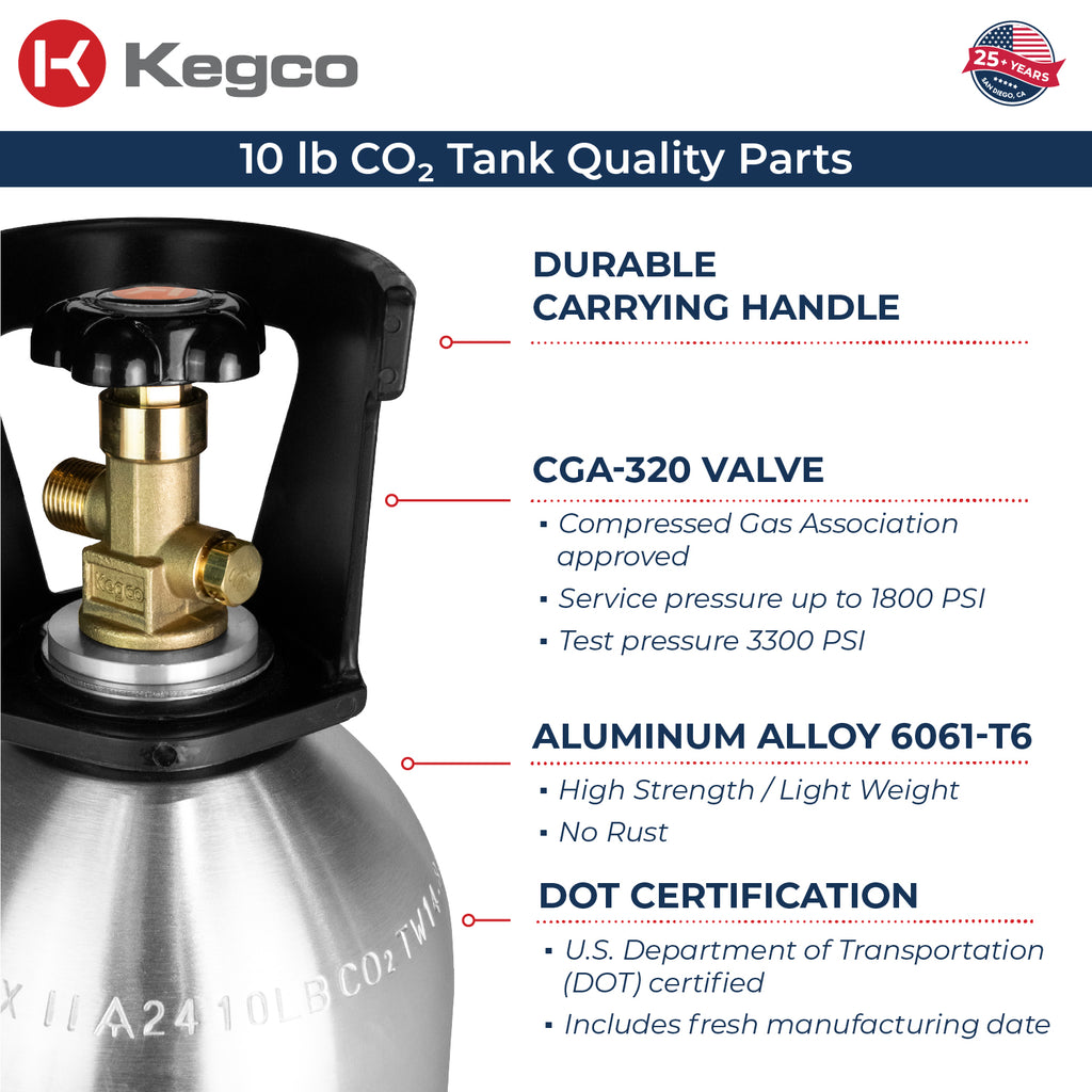 • Brand New & Premium Quality. Kegco only offers brand-new aluminum CO2 tanks, steering clear of reconditioned tanks, for a fresh, top-tier experience every time.