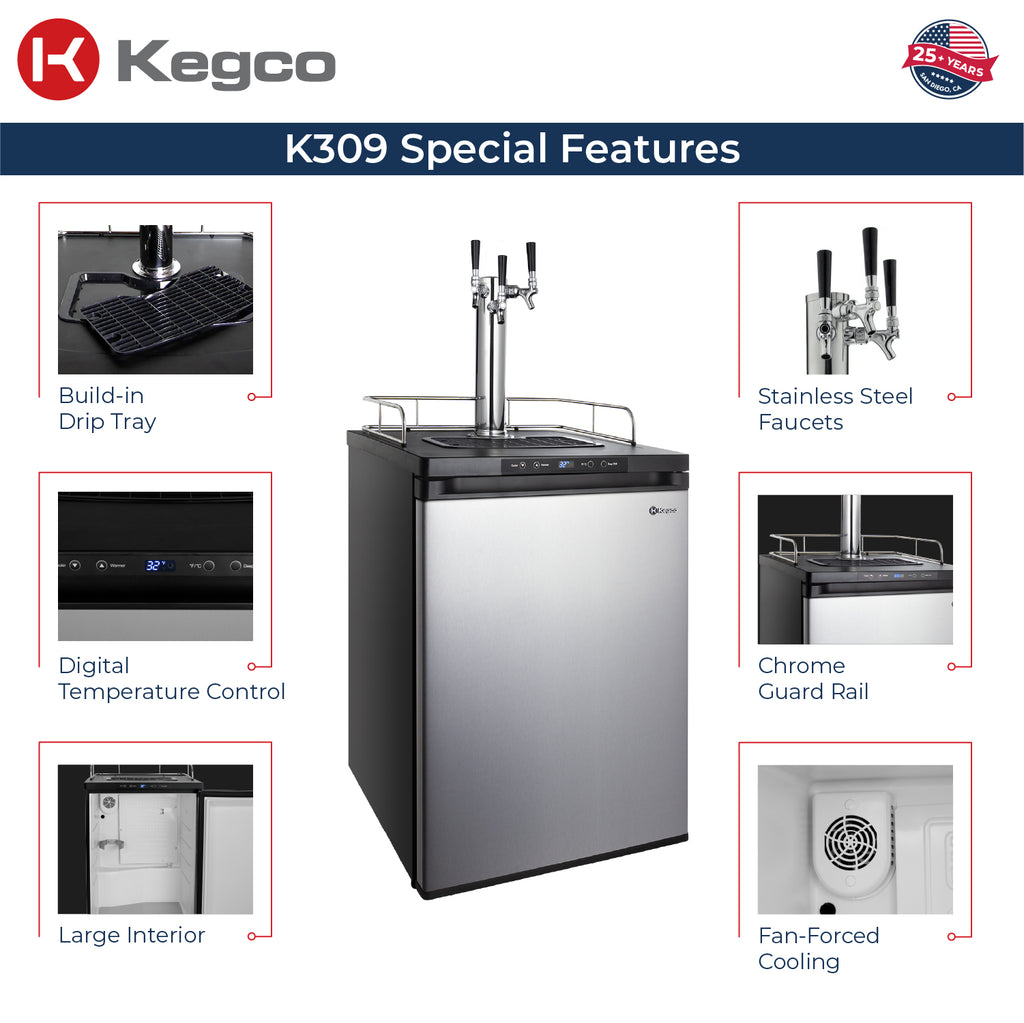 Kegco K309SS-3 3 Faucet Digital Kegerators - Stainless Steel Door