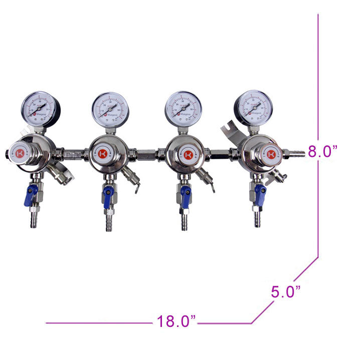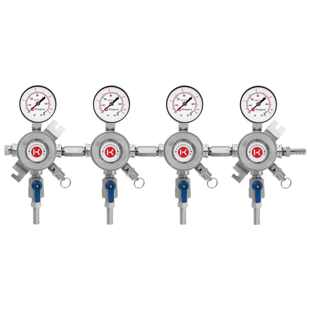 - This secondary regulator will allow you to set four different pressures on four different kegs and release the pressure from any one of the keg