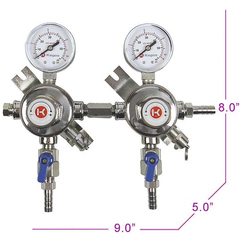 - The Kegco LH-54S-2 Pro Series Two Product Secondary Regulator is ideal when attempting to dispense two or more kegs off of the same Co2 tank at different pressures