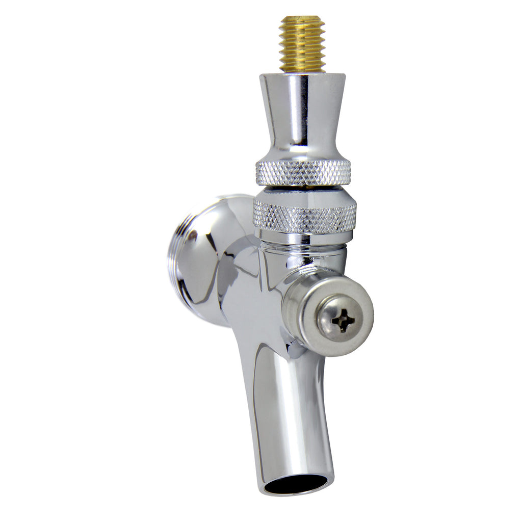 The Kegco 4933KSC Beer Faucet is a self-closing facuet that comes equipped a ABS plastic shaft with a spring-loaded action that closes the faucet when the lever is released. This premium quality draft beer faucet is constructed of a forged brass body with a sleek chrome finish, a brass lever with a standard threading that is compatible with most branded tap handles, and a brass bonnet and collar with a sleek chrome finish.