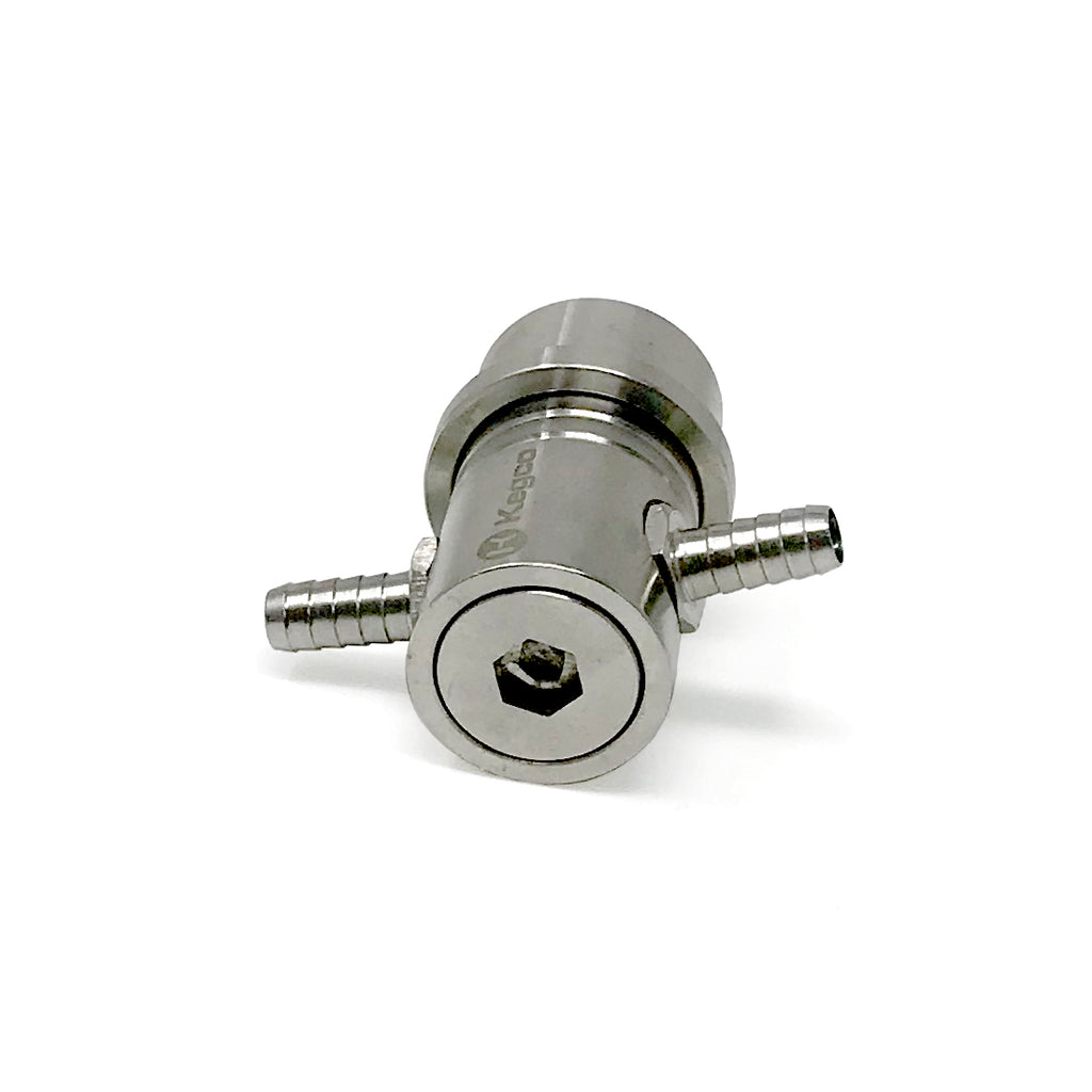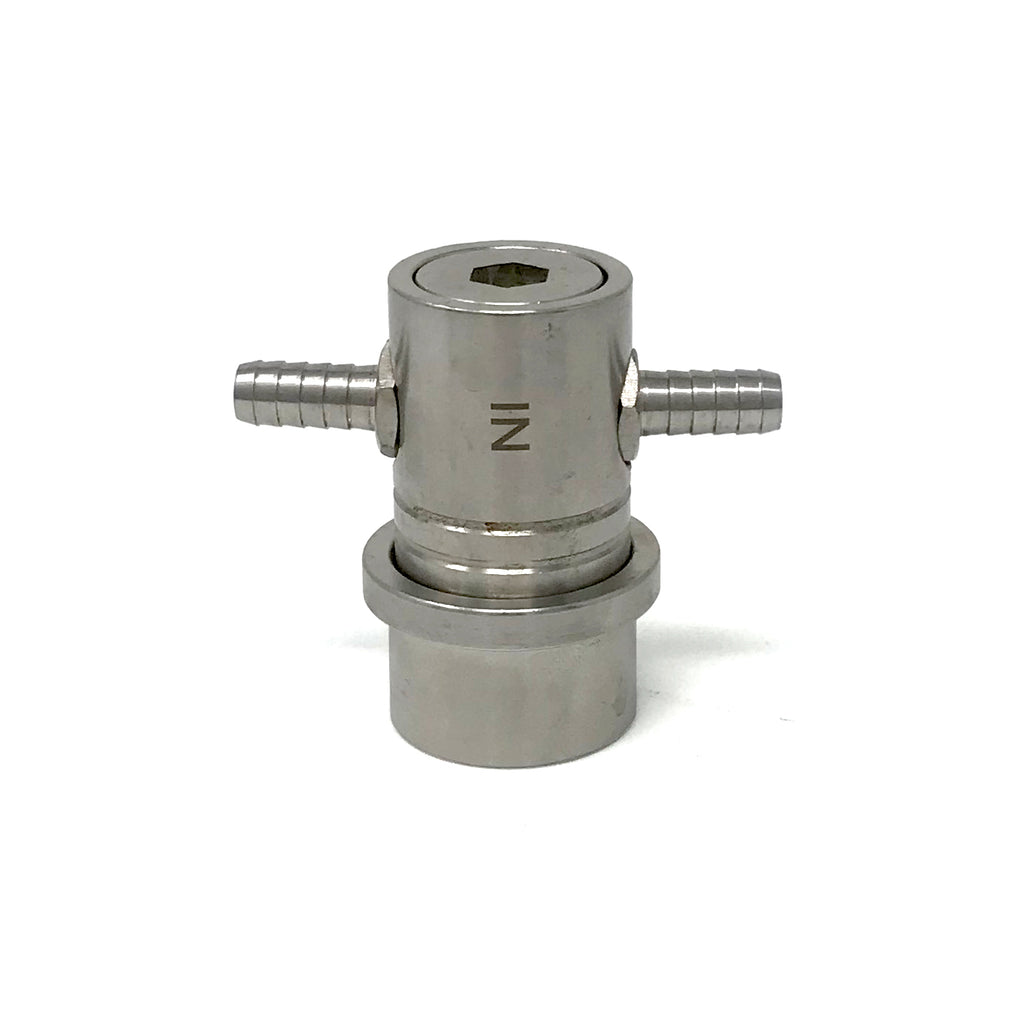 This machined stainless steel ball lock coupler allows you to run multiple kegs with only one gas line. It features two opposing 1/4" barbs on one ball lock coupler.