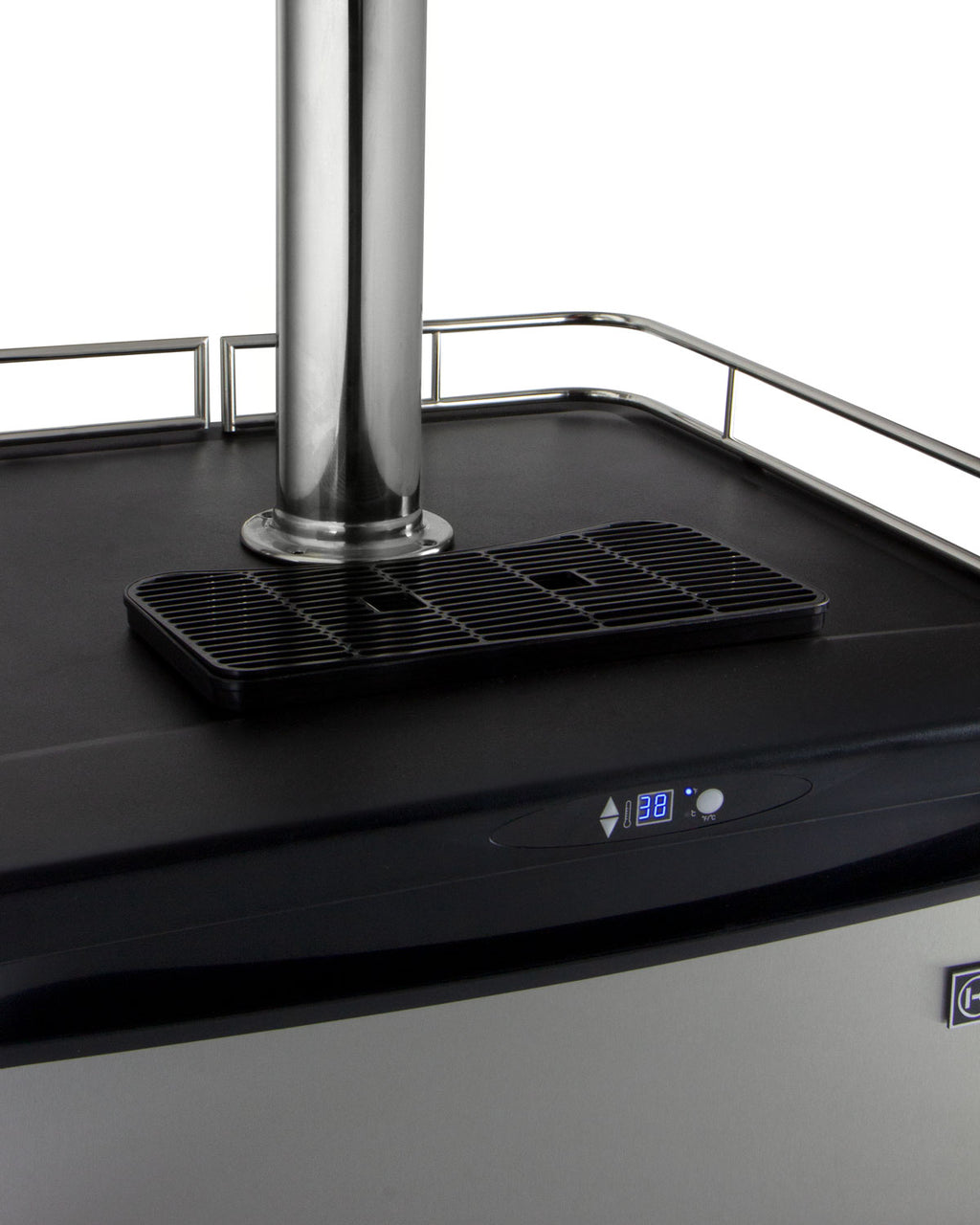 The ICZ163S-2 comes standard with handy features for a superior keg dispensing experience. On top, the countertop includes a removable drip tray and a chrome guard rail to help prevent spills.The double tap design allows you to dispense from two different 5 gallon kegs at the same time.