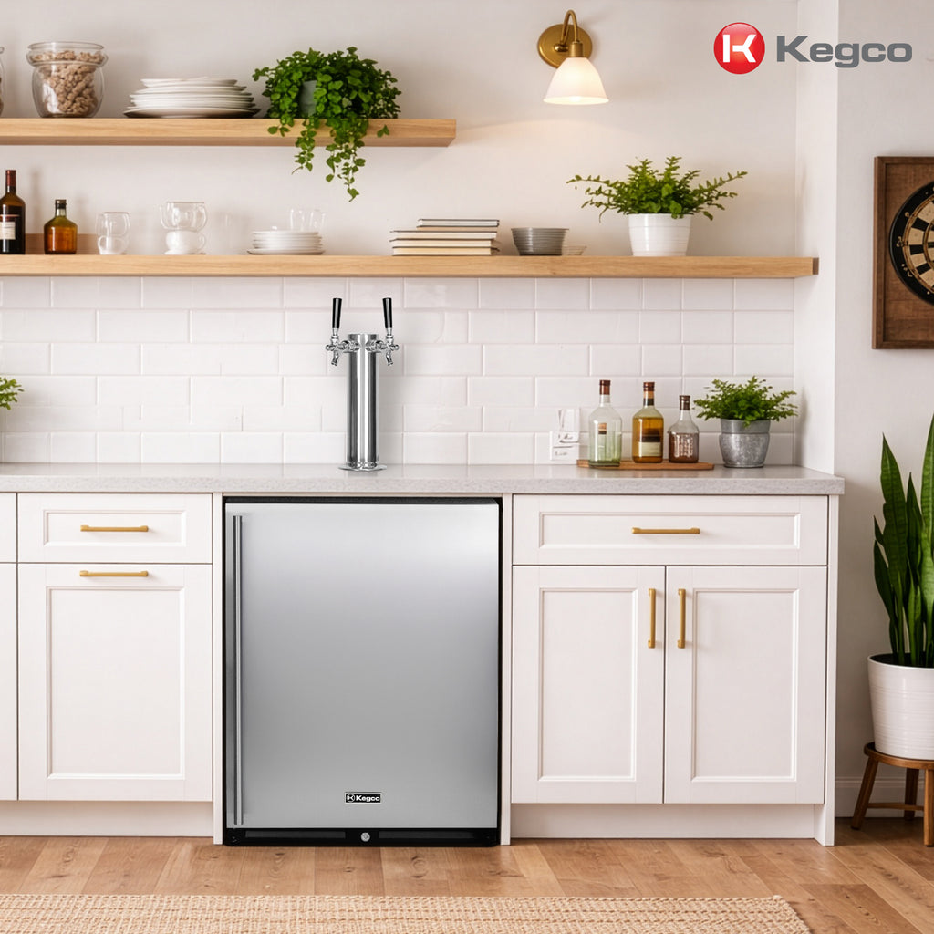 The front-venting design allows you to build this kegerator into cabinetry for a seamless look that is easy to maintain and provides more floor space. An integrated tap in your countertop gives you immediate access to fresh, cold beverages.
